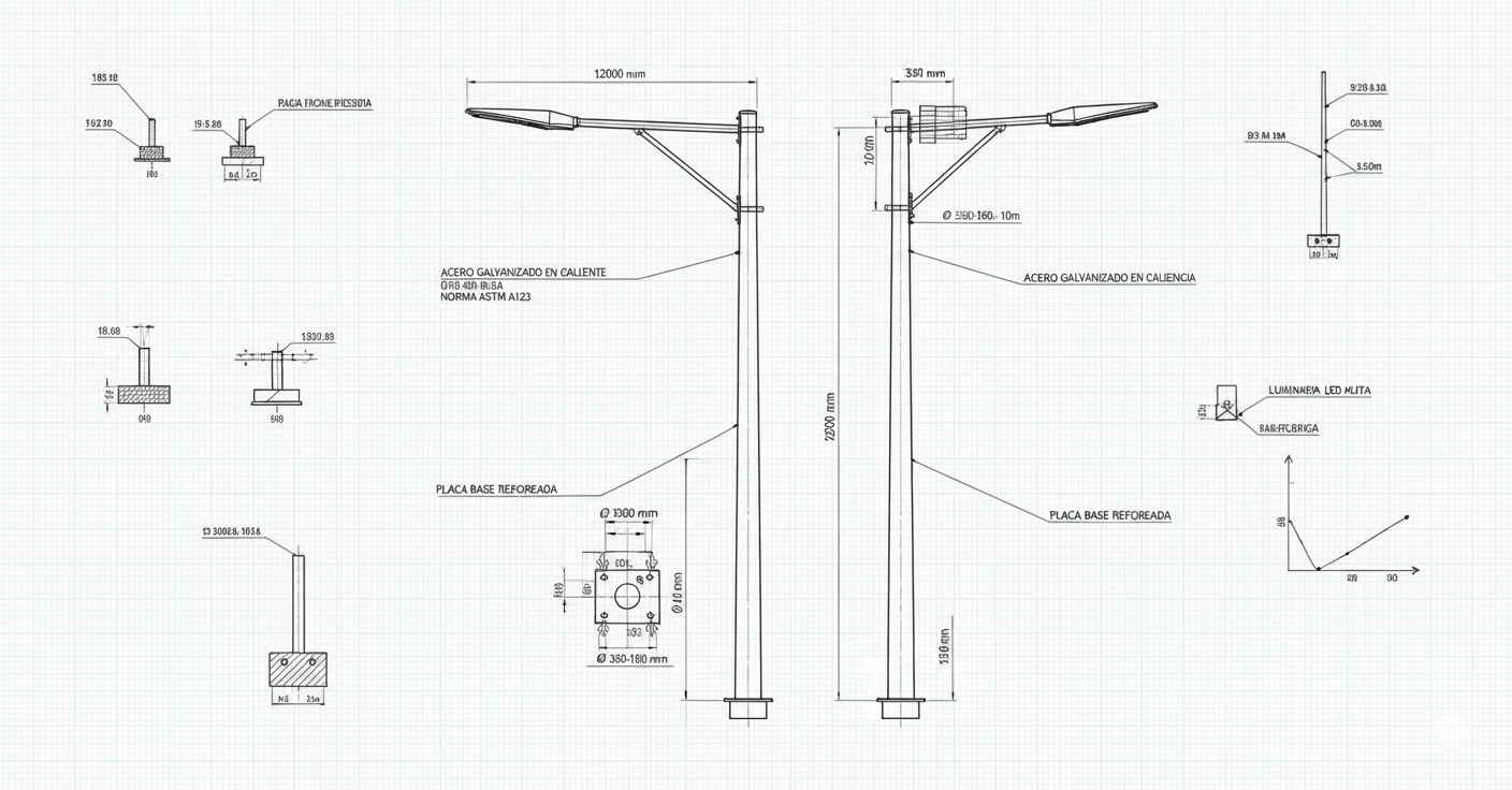 Nuestros postes tubulares galvanizados son la mejor opción para obras públicas, alumbrado y proyectos industriales.