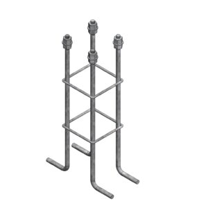 Canastillo de acero de 1/2×500 para fundación de postes mediante base cementada. Fabricado en acero galvanizado en caliente.